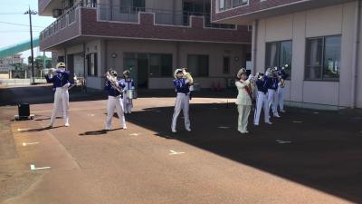6月10日に小松市の特別養護老人ホーム みゆきの郷での依頼演奏を行いました。老人ホーム等での演奏は3年振りらしく、現部員にとっては初めての経験でした。ホームの方々もひとときの楽しい時間を過ごされ部員もドリル演奏ができたことに感謝の気持ちでいっぱいです。
