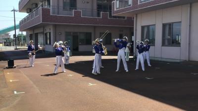 6月17日、先週に引き続き、介護老人福祉施設 めぐみの里で依頼演奏を行いました。生徒達は、老人ホーム等の演奏披露も2回目とあって、満足のいくドリル演奏が出来たと思います。特にドラムメジャーは練習の成果があり、最後も初めて決まりました。