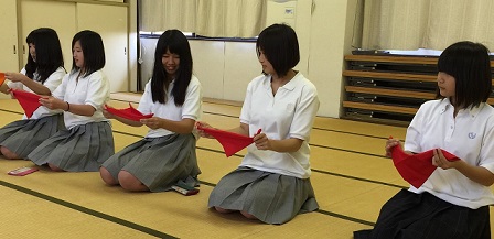 割稽古の服紗さばき、みんなでやってます。