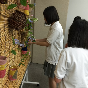 生徒たちは思い思いに花を生けて待合室を華やかにしていました。