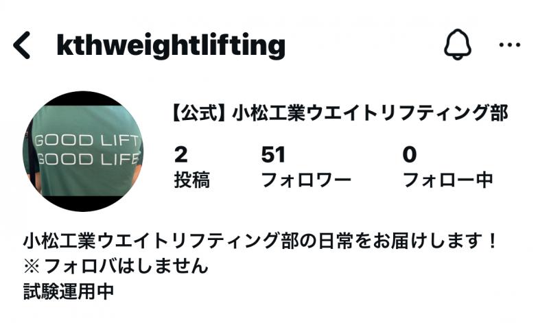 アカウント名「@kthweightlifting」です(半角です)