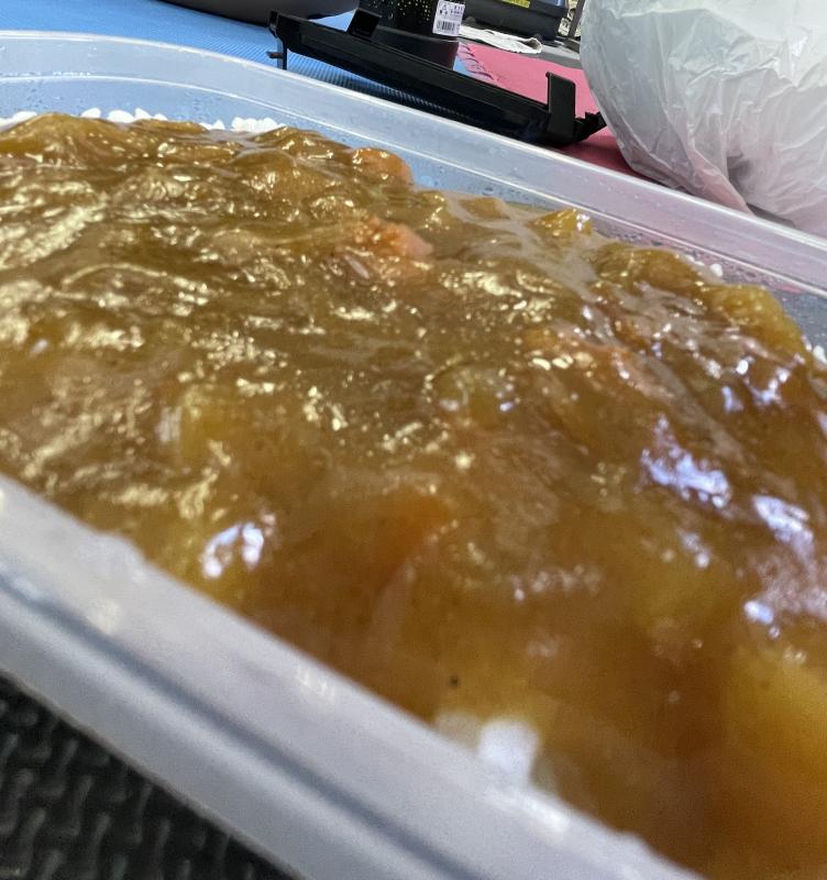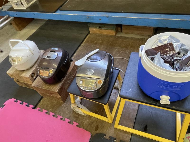 各自自宅から白米を持参して、カレーはレトルトカレー28袋、おかわり用のお米は1.5升炊いてみんなで食べました。