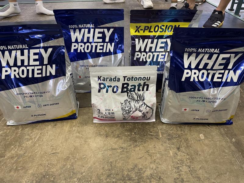 「エクスプロージョン」の部活動応援キャンペーンに当選し、プロテイン12㎏とリカバリー入浴剤の提供品をいただきました。新人大会に向けて、筋力強化しこれからのパフォーマンスアップに活用していきます!!