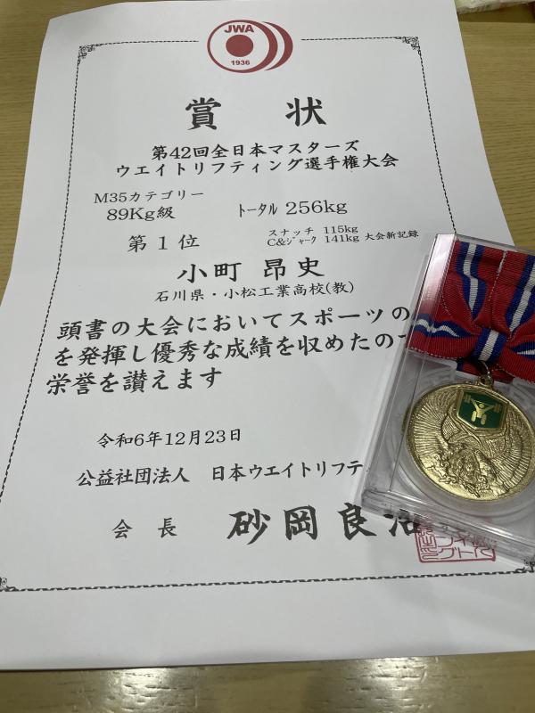 ウエイトリフティング部として2年連続の入賞となりました。