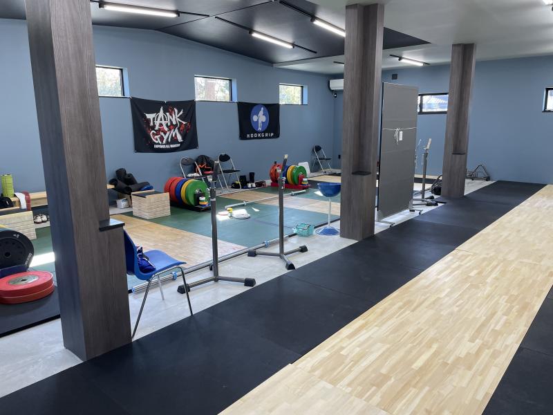 練習後に、富山市内にあるウエイトリフティング専用ジムを見学に行きました。
