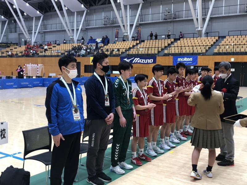 令和4年度 第46回全国高等学校ハンドボール選抜大会は、三重県のサオリーナで開催され、本校男子ハンドボール部は奮闘し、見事、全国第3位に輝きました。