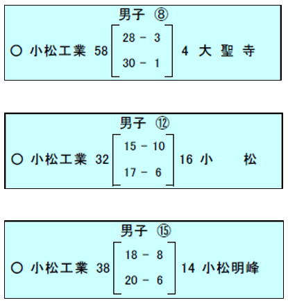 活動場所 | 学校体育館、小松総合体育館、末広体育館 | |||