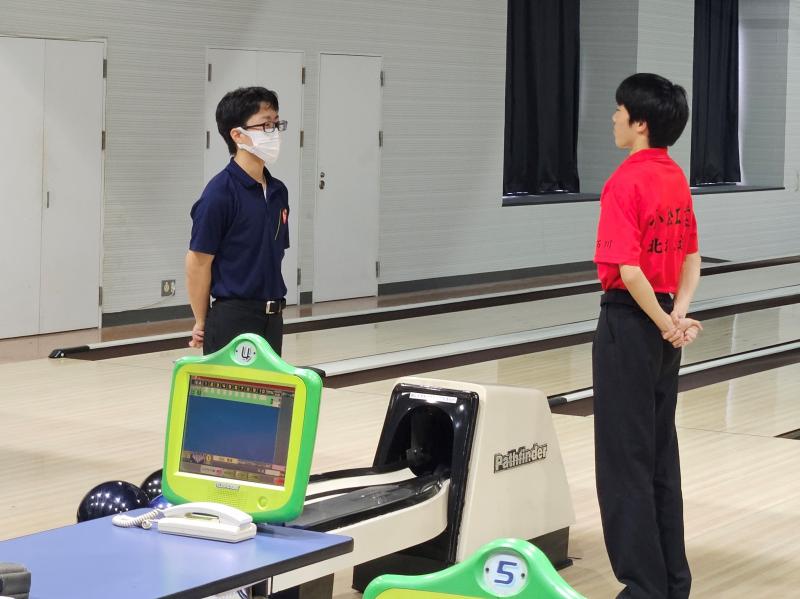 新人大会は2日間の日程で2人チーム戦、個人戦、個人総合決勝トーナメントが行われました。今大会は1年生、2年生全員が参加し、全ての競技で上位独占を目指し大会に挑みました。レーン相性に悩み、なかなか本調子が出せない選手もいる中で、2年生の北出君が開始1ゲーム目から275点と好スタートを切り、その勢いのまま大会を牽引していました。