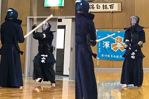 現在の部員構成は、1年生2名、2年生2名、3年生2名です。顧問は、深澤、石坂が担当しております。各大会での上位進出を目指して稽古に励んでおります。先日の県総体では、団体メンバーも組むことができ、少しでも上位へという意気込みで臨みましたが残念ながら二水高校に敗れました。今後も応援のほどよろしくお願いします。