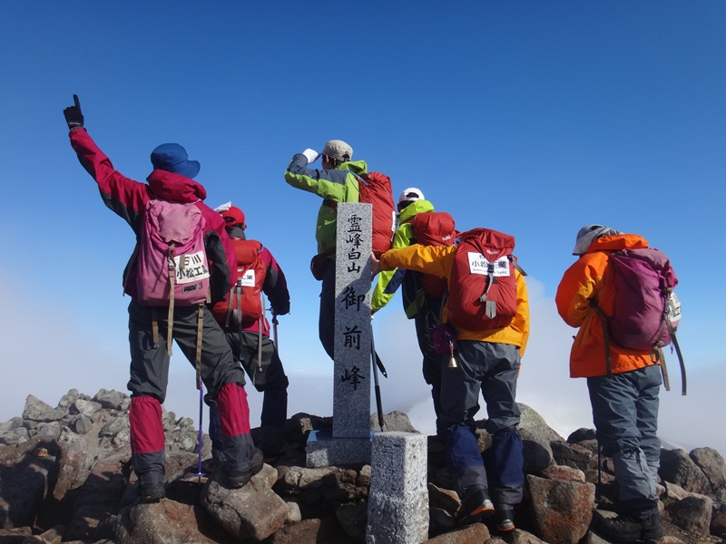 室堂で、A隊とB隊が合流して御前峰に登りました。今回もかなり早く登っていました。
