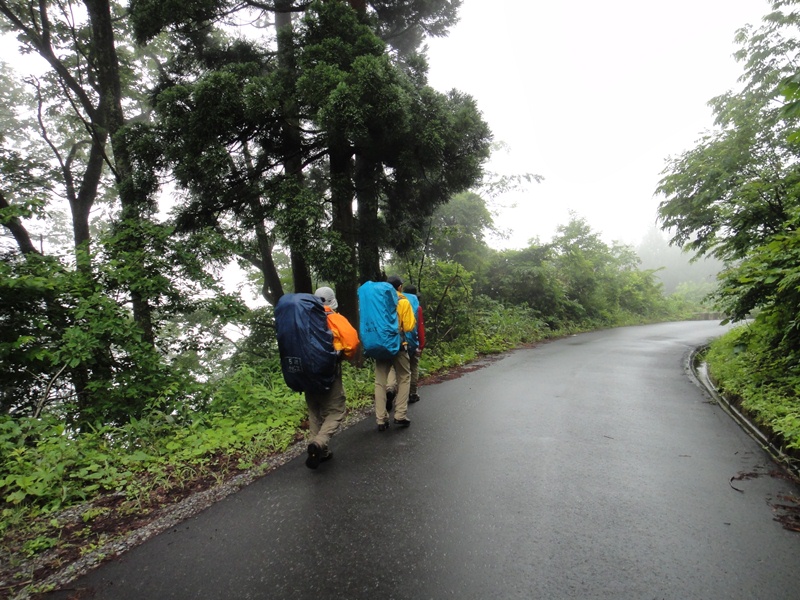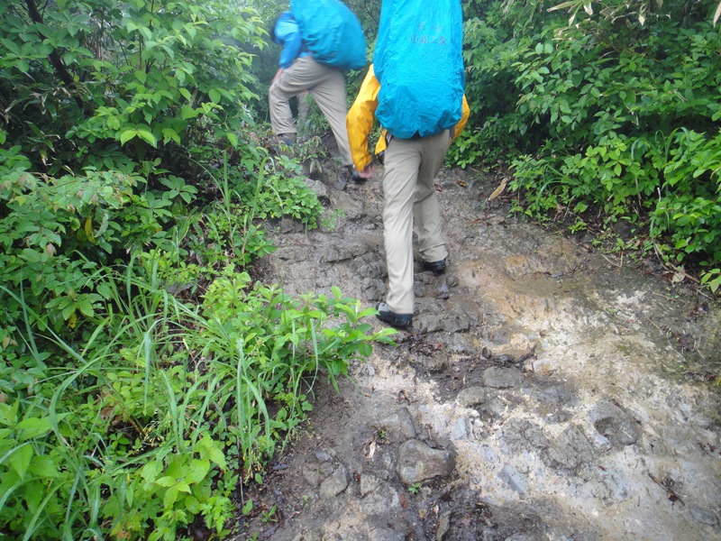 雨の影響で地面がすべりやすくなっています。足元に注意してのぼっていきます。