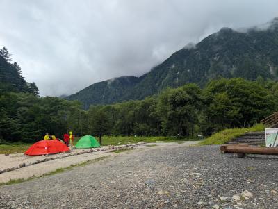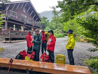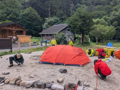 山岳部です。8月6日から8日にかけて、山岳部で北アルプスの蝶ヶ岳を目指し、夏山大会へ参加しました。初日の6日は、上高地から梓川のせせらぎに沿って約11km、およそ3時間歩き、深い緑に囲まれた「横尾野営場」でテントを張りました。翌7日は、蝶ヶ岳山頂へ出発準備を進めていましたが、あいにくの豪雨に見舞われてしまい、降り続く雨の状況を皆でじっと待ち、午後の小康状態を見計らって、安全を最優先に「槍見台」まで足を延ばしてきました。残念ながら、厚い雲がかかり、北アルプスの雄大な山々の全貌をはっきりと拝むまでには至りませんでしたが、雨上がりの空気の中、普段とは違う山の表情を感じることができました。今回はあいにくの悪天候で、予定を変更せざるを得ませんでしたが、それでも「いつかはきっと、あの場所へ」という目標、達成感はまた別の機会へと繋がりました。