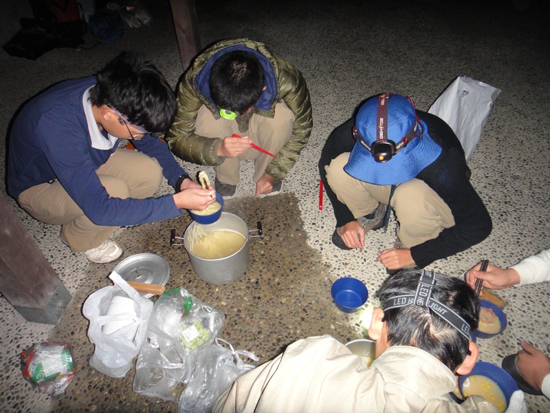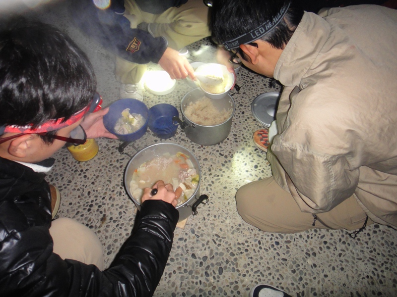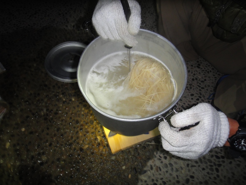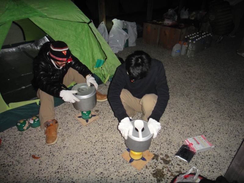 ついたら辺りはもう真っ暗なので、さっそくテントを建て調理を開始しました。