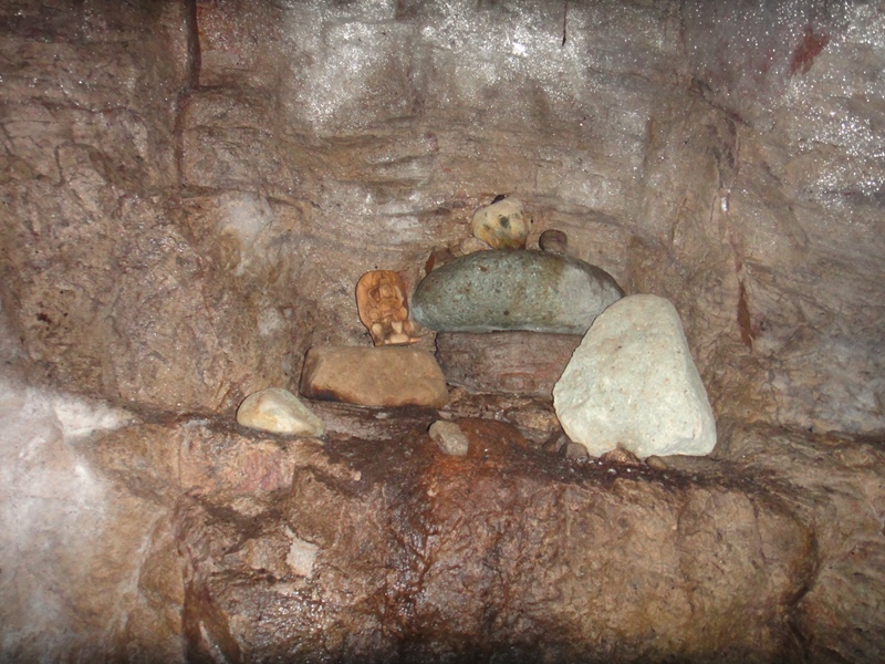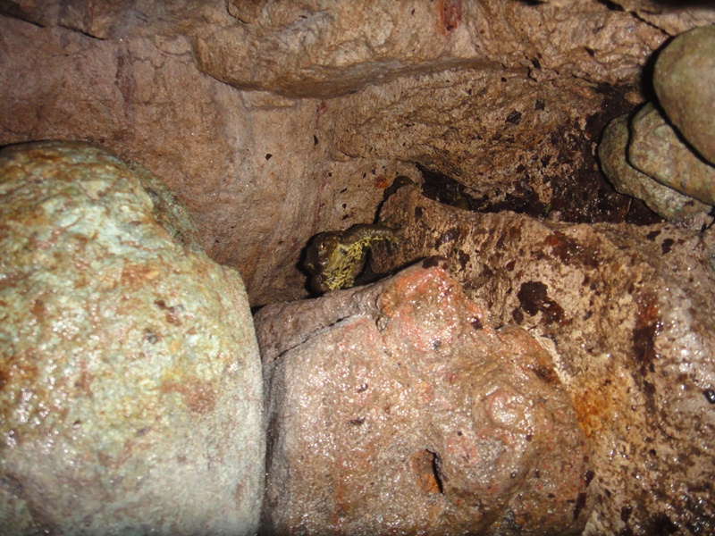 滝の横に穴があります。そこに何があるのか見に行こうとしているようです。