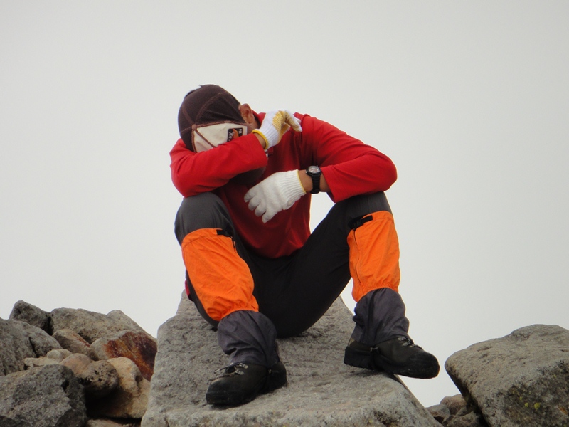 山頂で撮られた写真です。某山岳部(パート1)がものすごいペースで登るので、バテてしまいました。