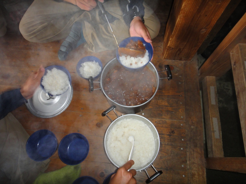最後の夕飯はカレーです。中辛のはずなのに、とても辛くて大変でした。