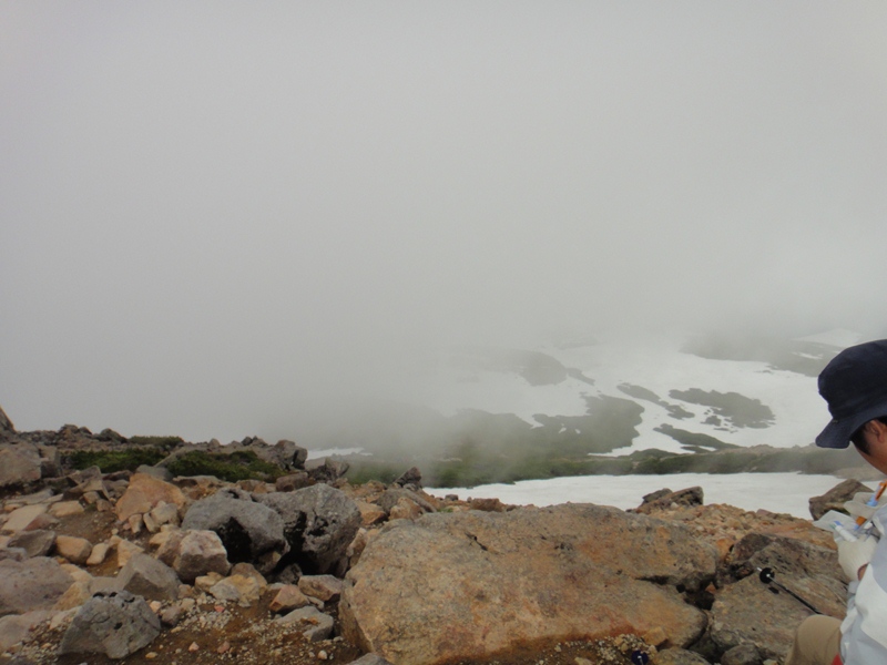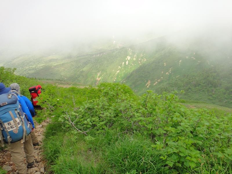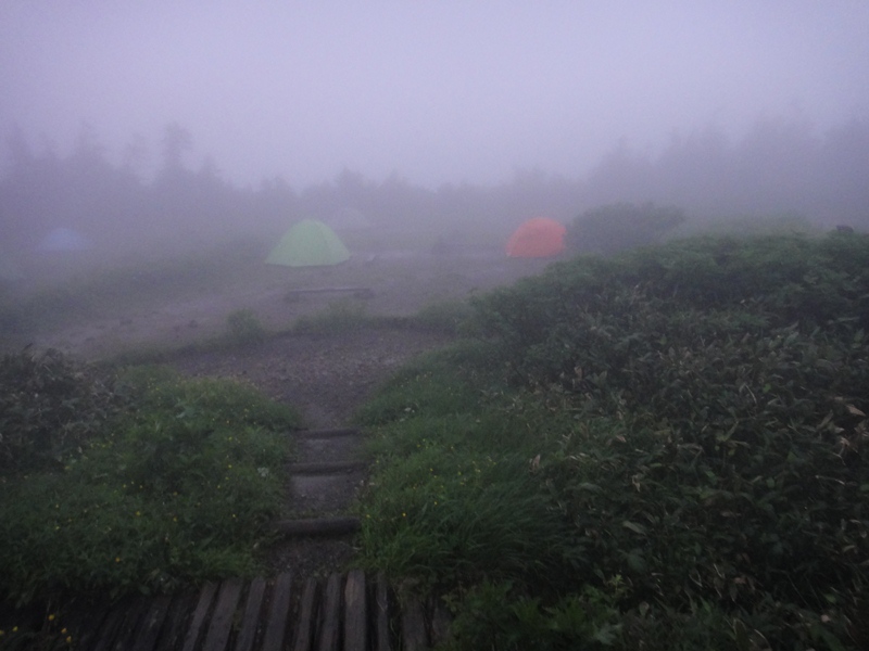 南竜ヶ馬場にて朝を迎えました。前日と違いガスがかかり雨が降りました。