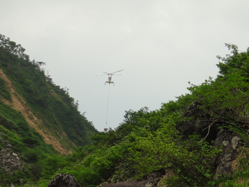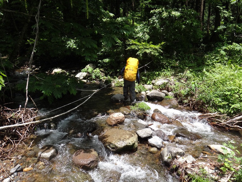 下山途中で数回沢を渡るところがありました。始めは、靴を脱いで渡る(沢に入る)と言われていたのですが、今回は水量が少なくそのまま渡れました。