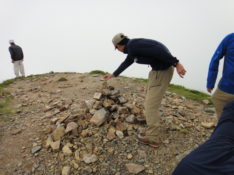 別山を去る前にケルンに石を一つ。でもうまいこと乗せられません。