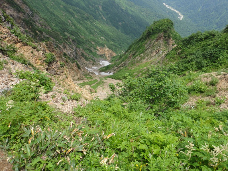 チブリ尾根をあがりきったらしばらく平坦な道が続く。夏にも関わらずまだ雪が残ってる。