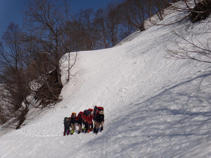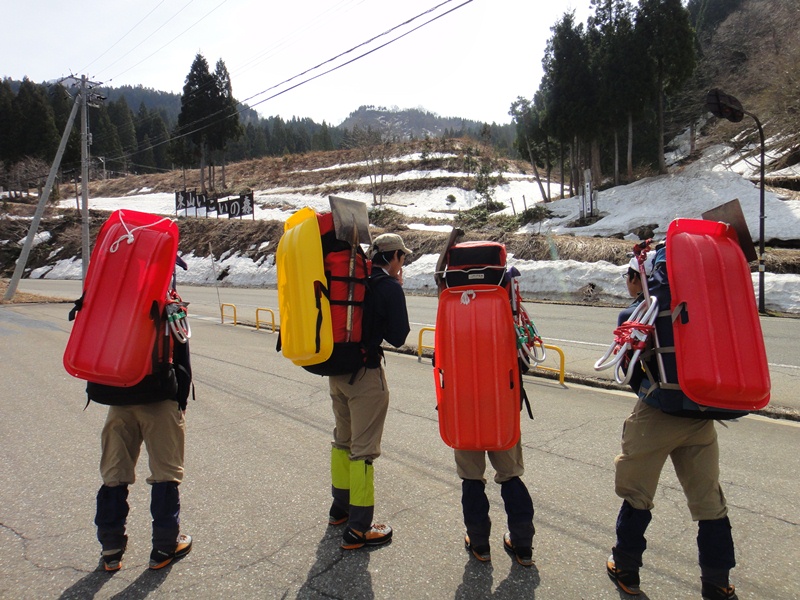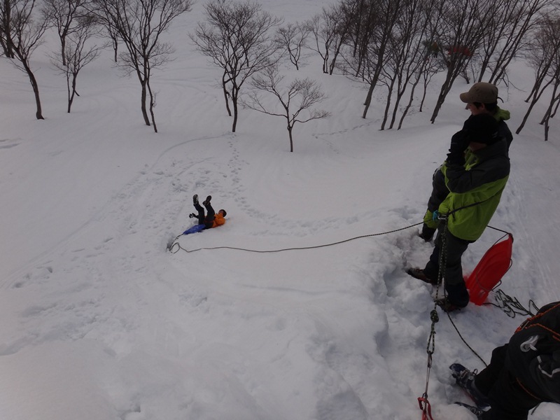 雪上での安全確保の練習 *(本当に落ちているわけではありません!!)