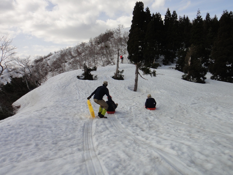 小屋についた時間が早かったため近くの丘でソリをして遊んでました♪