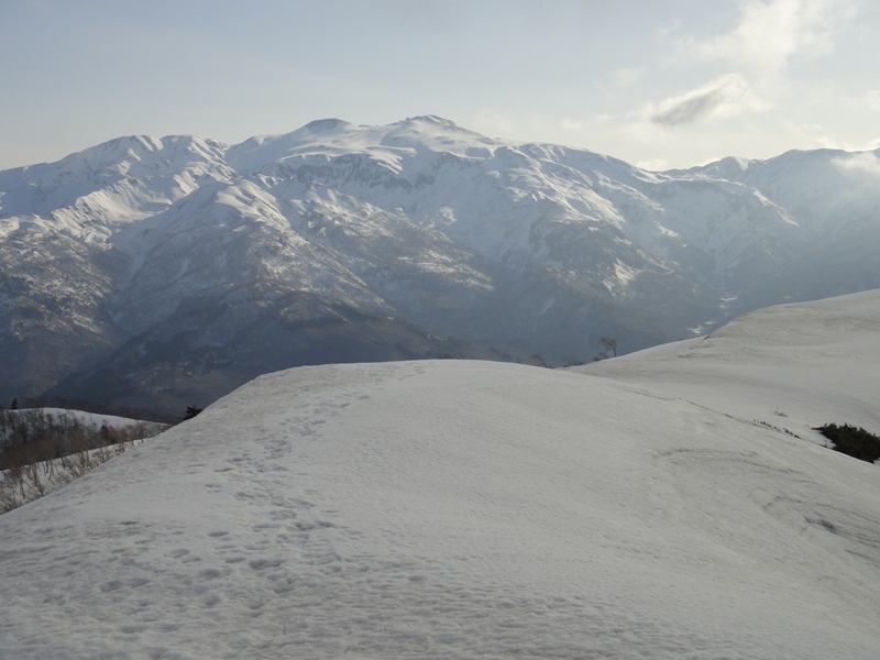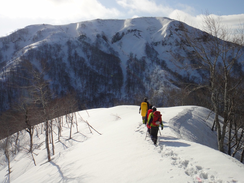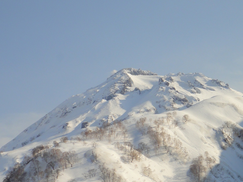 雪の上を3,4時間歩き目指す山頂が見えました!