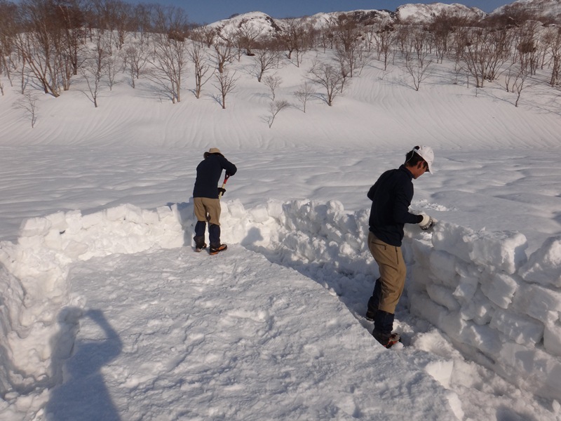 テントを囲む雪の壁造り(風避け用)