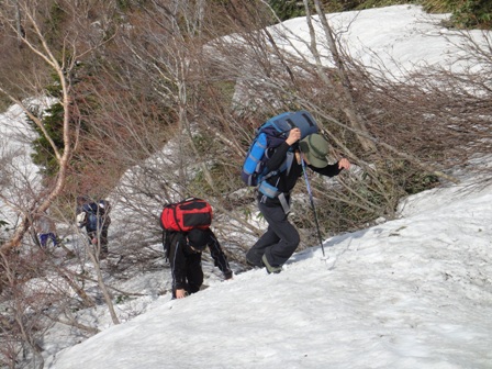 雪の斜面はとても歩きづらい