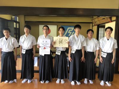 個人戦では3年生の堂前慶将が見事優勝。昨年に続き2連覇となりました。男子の2連覇は初の記録ということです。多くの生徒が高校入学から始める弓道競技において、2年生での優勝は非常に難しく、そしてそれを1年間保ち続けることもさらに難しいです。堂前選手の努力は素晴らしいものでした。堂前選手は8月徳島県にて行われるインターハイに個人戦で出場いたします!