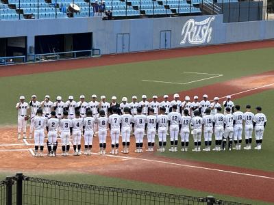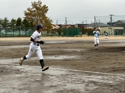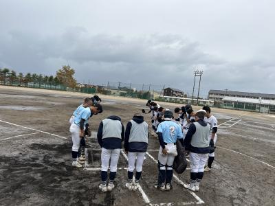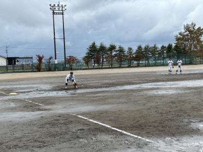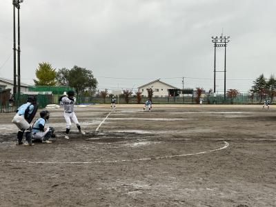 試合開始前に雨模様となりましたが、3年生は久しぶりにユニフォーム姿で、打って、投げて、走って、真っ白なユニフォームが泥だらけになりながらもハッスルプレーを見せていました。途中雨のため一時中断し、その後再開しましたが、5回表途中で再び雨が強くなり、残念ながら9回まで続行出来ずに降雨コードゲームとして終了しました。