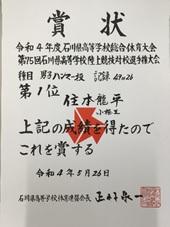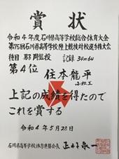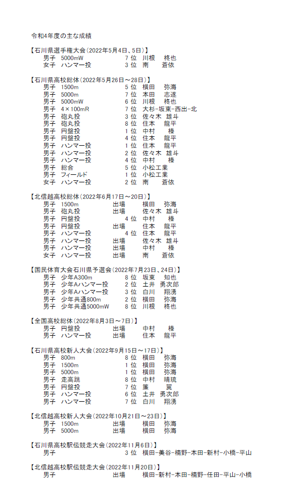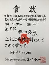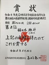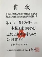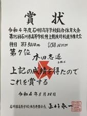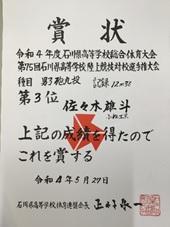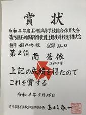 令和4年度 石川県高等学校総合体育大会 陸上競技 表彰披露
