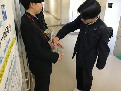 生徒会執行部が募金活動を行いました。