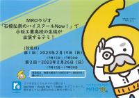 2023年2月17日 11時16分11/14 本校にてMROラジオ「石橋弘崇のハイスクールNow!!」の収録があり、電気科、材料化学の3年生が丁寧に受け答えをしました。収録では、どのような勉強をしているのか、日頃の部活動や学校生活、卒業後の進路について質問がありました。放送予定日は、次の通りです。