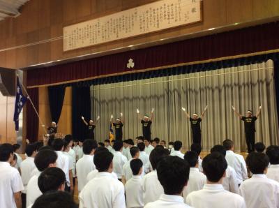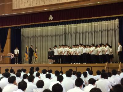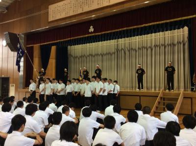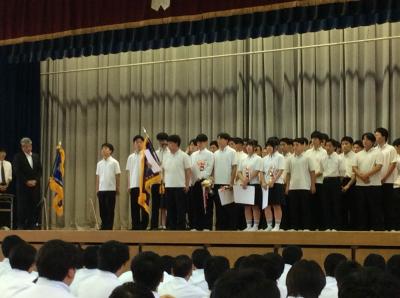表彰伝達式の後、北信越大会に出場する部活の壮行式を行いました。