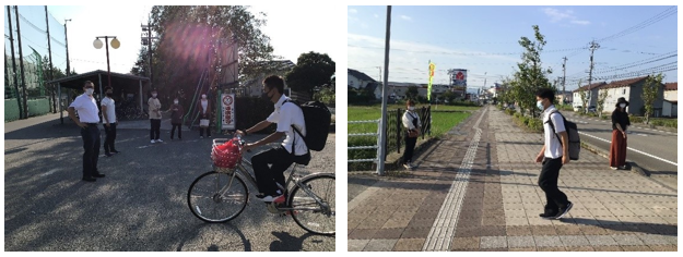 内容 PTA役員、PTA指導委員および教職員が、本校周辺の4ヶ所に分かれ、朝の挨拶運動とともに自転車乗車マナーの指導を行いました。