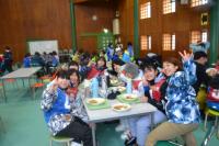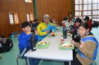 ランチルームで6年生みんなで給食を食べる「お祝い給食」がありました。いつもは教室で食べていて、ランチルームで給食を食べるのはコロナ等もあり1年生以来のことだったそうです。お祝いということで6年生は特別でデザートを ピーチゼリー・青りんごゼリー・オレンジゼリー・プリンの中から一つ選んで食べました。(在校生はピーチゼリーでした)いつもと違った雰囲気に、6年生みんなニコニコでおいしい給食をいただきました。