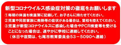 ③児童が新型コロナウイルスに感染した場合やPCR検査等を受けることになった場合は、速やかに学校に連絡して ください。(休日や夜間は、七尾市教育委員会53-5090へ連絡してください)