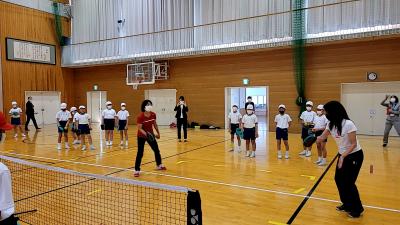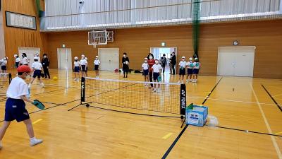 2022年4月19日 12時39分4月18日(月)能登和倉国際女子オープンテニスの関連行事として、小丸山小学校の5年生が「テニピン」を体験しました。講師には、元プロ選手の佐藤直子さんが来てくださいました。テニピンとは、易しさを追求して、用具とルールをアレンジしたテニス型ゲームです。ボールの打ち方を教わった後、ゲーム形式で楽しみました。また、一般財団法人 服部真二文化・スポーツ財団様からセイコースポーツカウンターを頂きました。