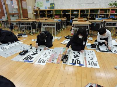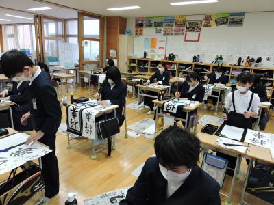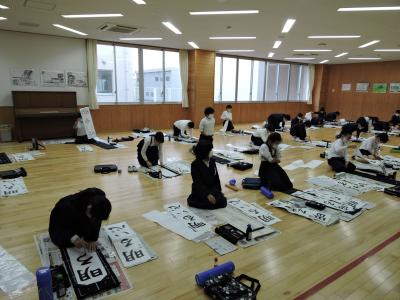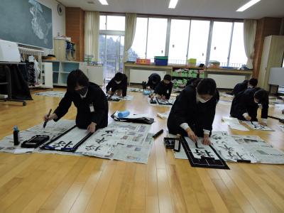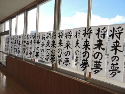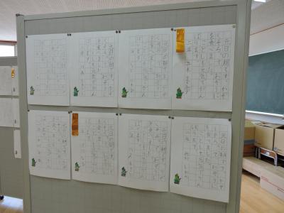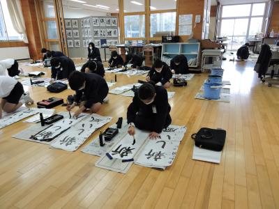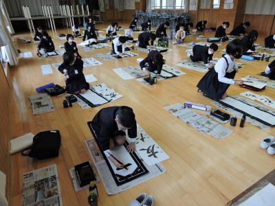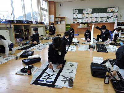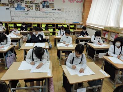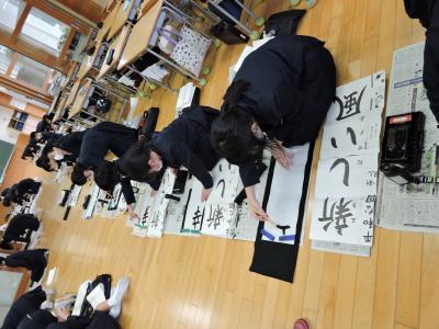 始業式に続いて校内書き初め大会が行われました。1・2年生は硬筆、3~6年生は毛筆です。練習の成果が発揮された力作ぞろいでした。