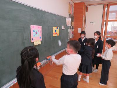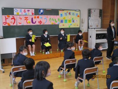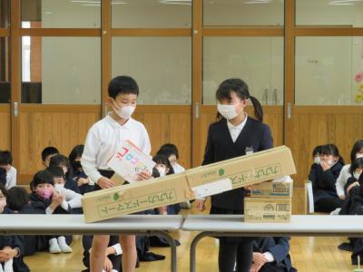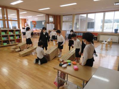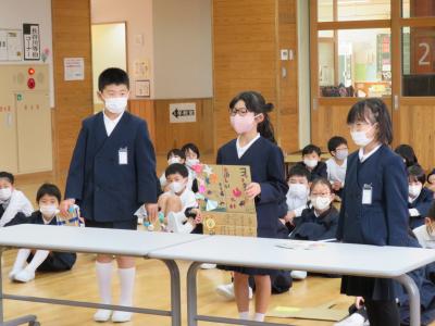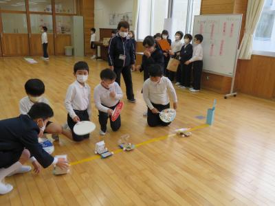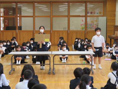 2年生が延期になっていたおもちゃまつりに1年生を招待しました。2年生の凛々しい姿、楽しむ1年生の姿が見られました。