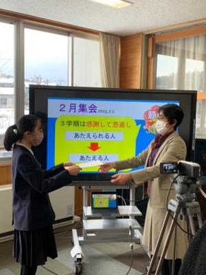 1月10日(火)3学期の始業式をオンラインで行いました。3学期は2学期までの様々なことに感謝し恩返しの学期にしようと伝えました。