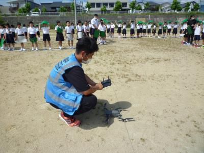 7月6日(水)延期になっていた150周年記念の航空写真の撮影ができました。校章の一文字と顔写真の2パターンをドローンで撮影しました。