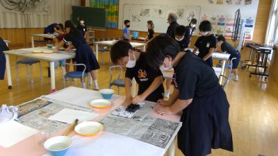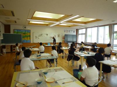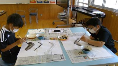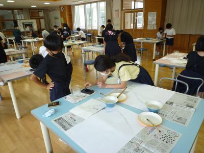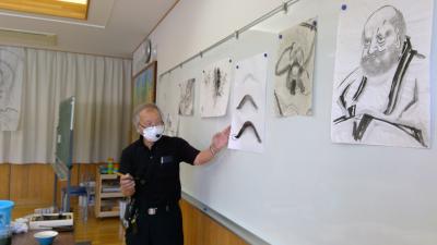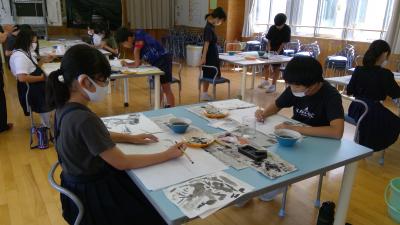 5年生は元小丸山小学校の校長先生である橋元道彦先生から水墨画を教えていただきました。5年生は5月に長谷川等伯展を閲覧し、その後七尾の偉人である「長谷川等伯」について調べてきました。