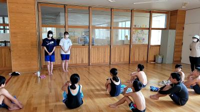 8月1日~3日七尾高等学校2年生2名が学校体験に来ました。プール開放時に子供達と交流したり、校内研修(授業研究)や職員作業に参加したりしました。そして、高学年児童にとても素敵なメッセージ動画を残していってくれました。ありがとう。