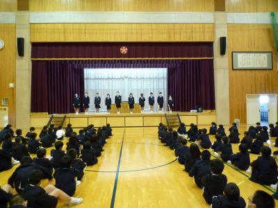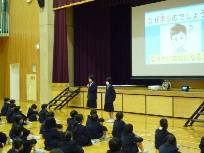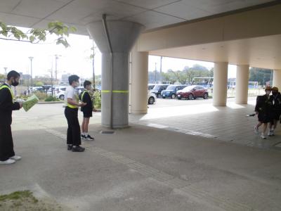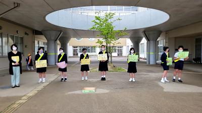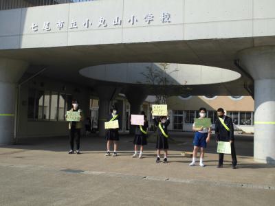 前期児童会が「元気なあいさつができるように」と挨拶運動を行っています。企画委員会を先頭に1週間ずつ各委員会が取り組んでいます。