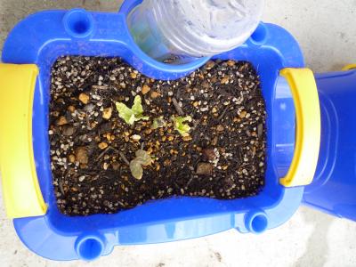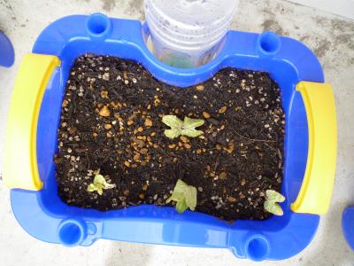 5月16日(月)の朝、1年生が10日に植えたあさがお、全員芽が出ていました。1年生は大喜びでした。よかったね。