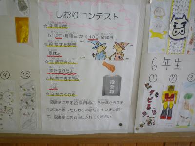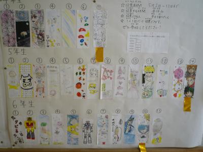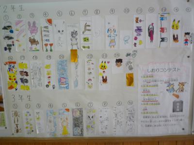 図書委員会によるしおりコンテストがありました。放送で入賞者の名前が発表されました。力作ぞろいでした。がんばったね。