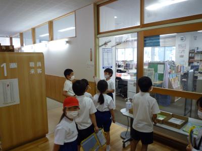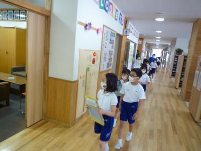 5月19日(木)のびのびになっていた学校探検がありました。2年生の案内で1年生が校内を回りました。2年生は張り切って案内していました。凛々しかったよ。