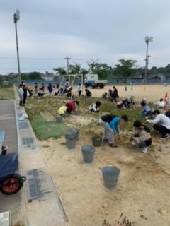 5月27日(土)育小会によるクリーン作戦が行われました。運動場の除草に溝そうじ、花壇の花植えなど、きれいになりました。ありがとうございます。